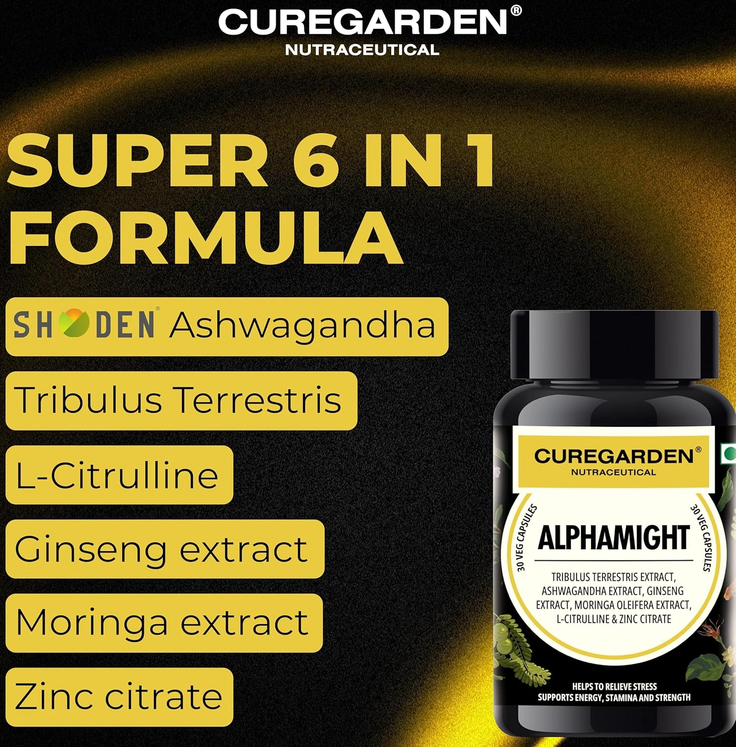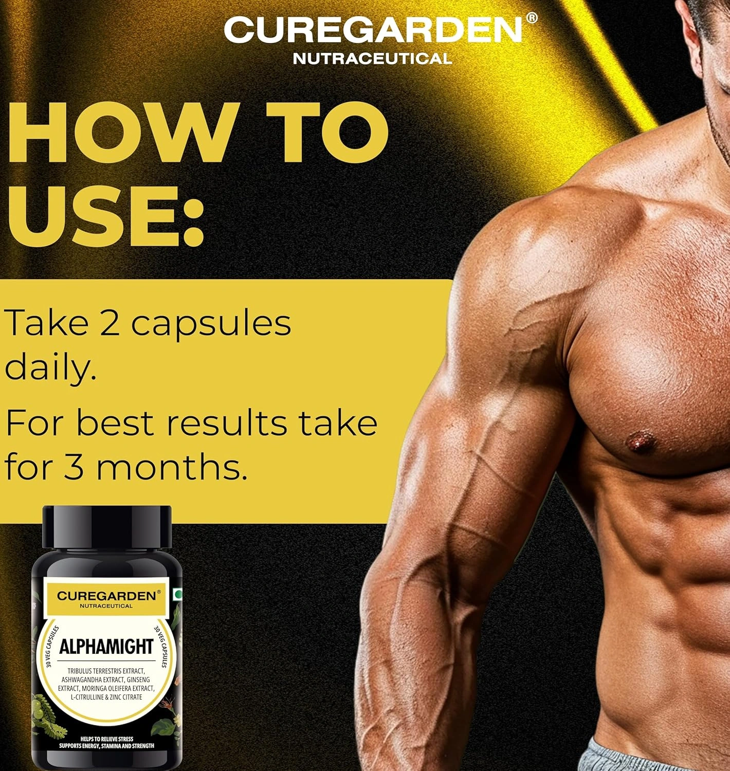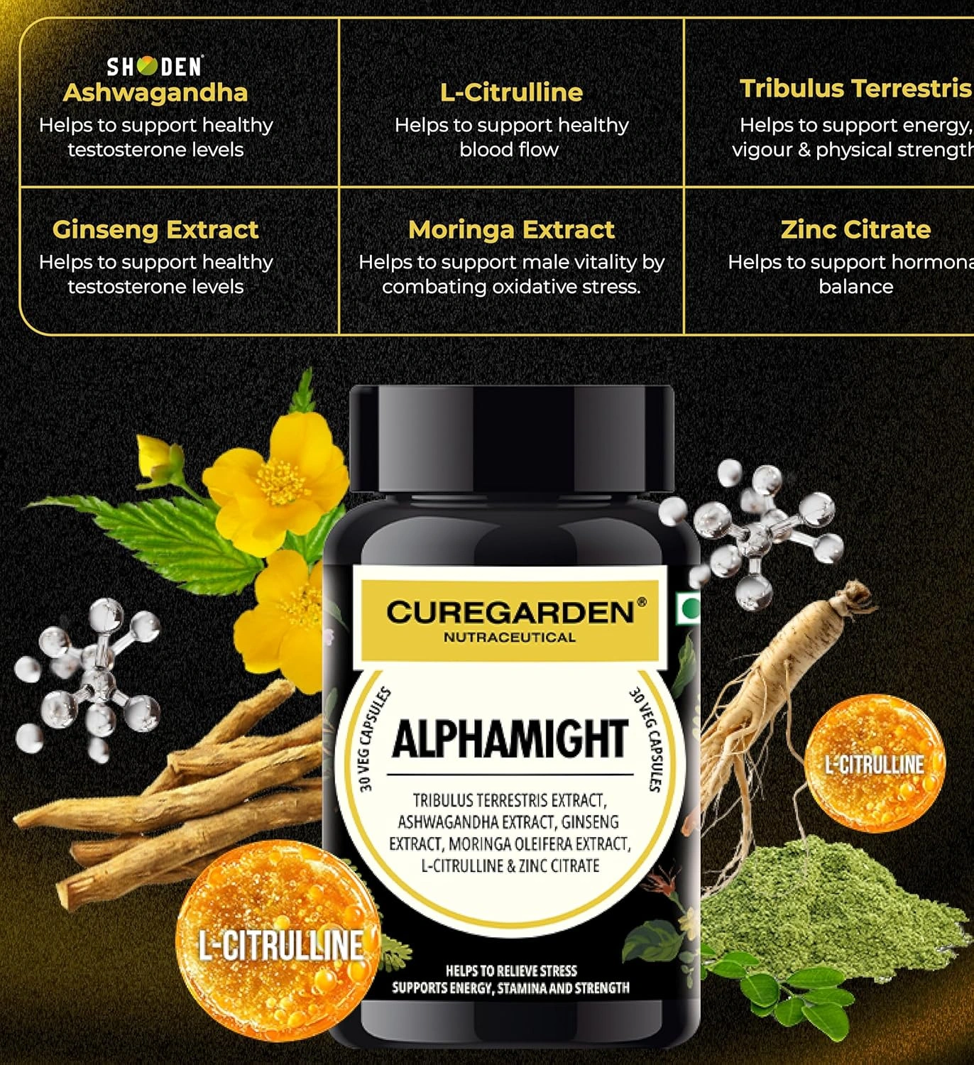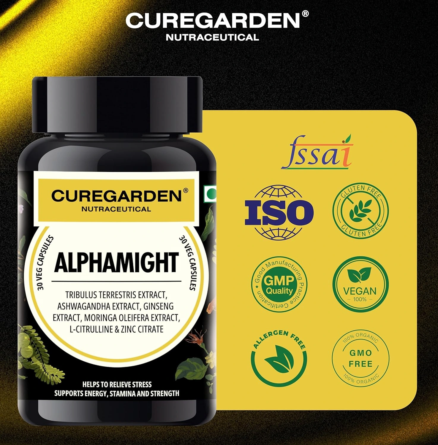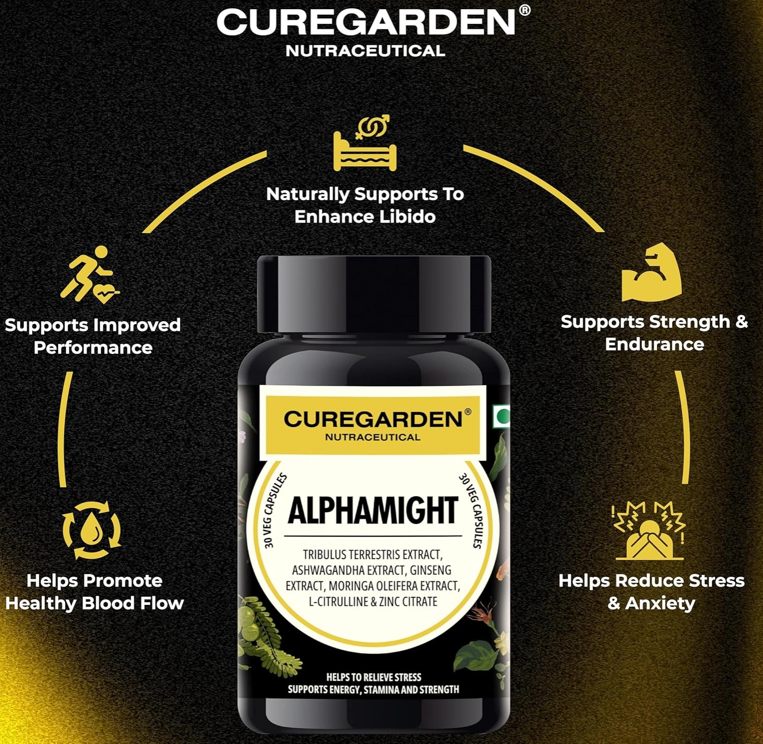 Curegarden Alphamight is a thoughtfully crafted daily wellness supplement designed to support energy, stamina, strength and stress balance using a blend of time-tested herbal extracts and essential nutrients.